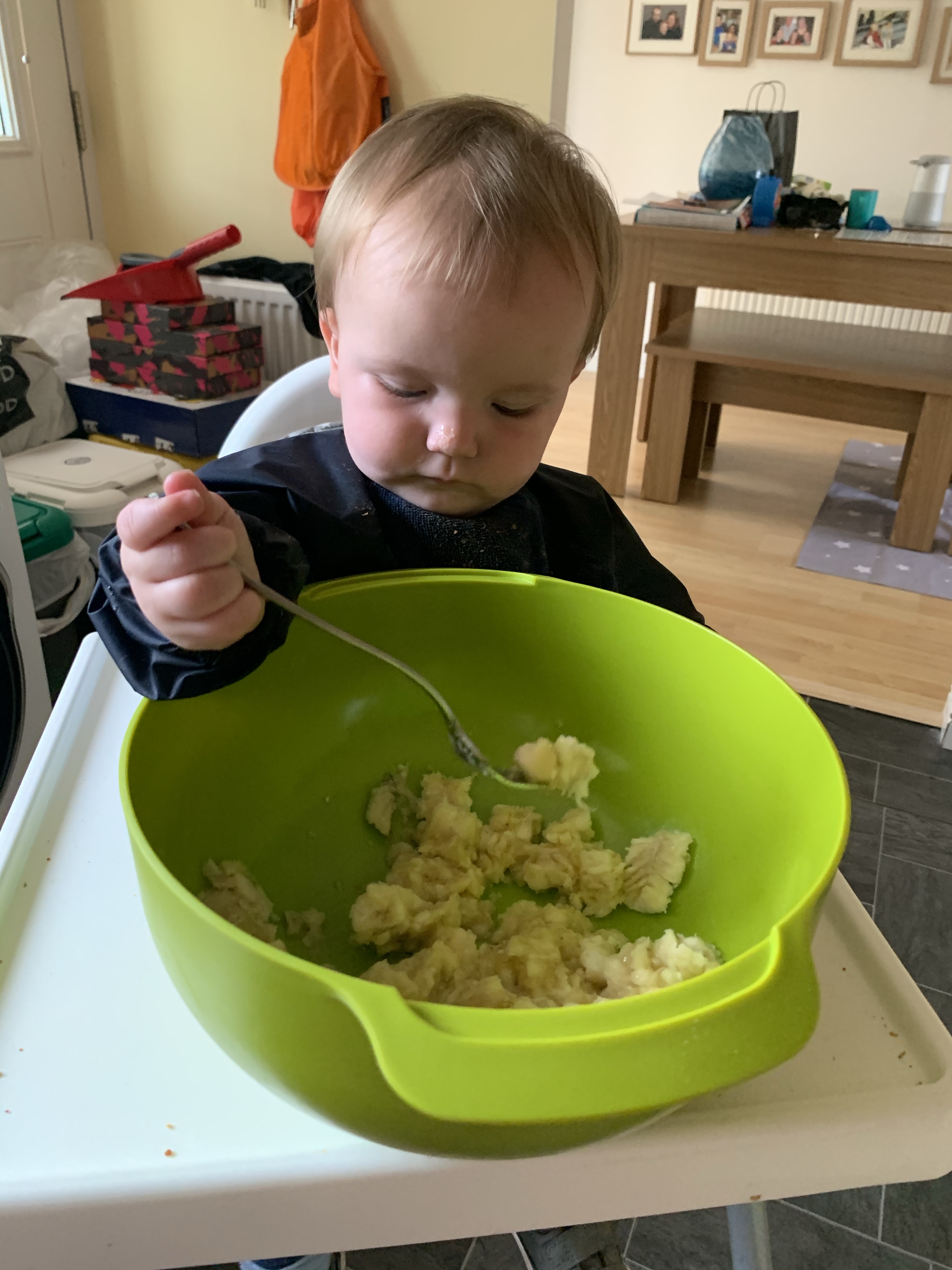 Every week we do baking together. We both love to bake and he learns some key skills such as mixing egg and learning his numbers. I have also now braved paints with him, where I can teach him colours and he can get his Jackson Pollock on! James has discovered stickers now. So as you can imagine stickers will be placed over us in the future. I do have imaginative play with James. In fact I built a castle last week with cardboard boxes. Some of this is still standing and he loves it. No technology is involved in these activities, well, minus Alexa blasting show tunes.